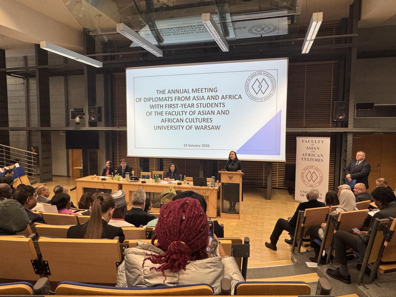 Элчин сайд Н.Оюундарь 2026 оны 1 дүгээр сарын 19-ний өдөр Варшавын их сургуулийн Ази, Африкийн судлалын факультетийн нэгдүгээр курсийн оюутнуудад зориулан уламжлал болгон зохион байгуулагддаг Ази, Африкийн орнуудын дипломат төлөөлөгчдийн 30 дахь удаагийн уулзалт, мөн тус факультетийн эрдэм шинжилгээ, судалгааны ажлыг танилцуулсан үзэсгэлэнгийн нээлтэд оролцов.